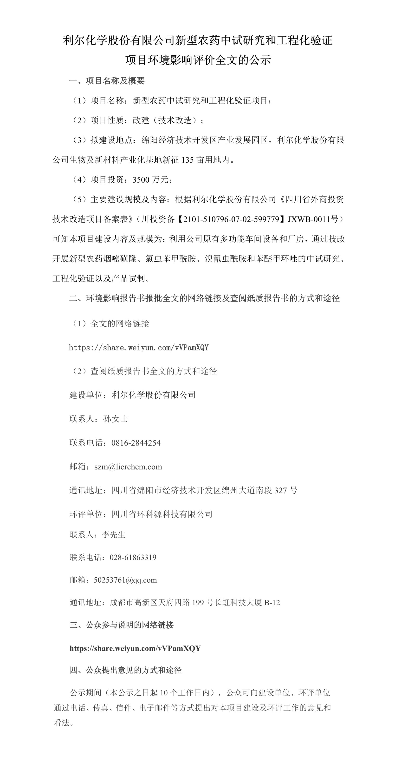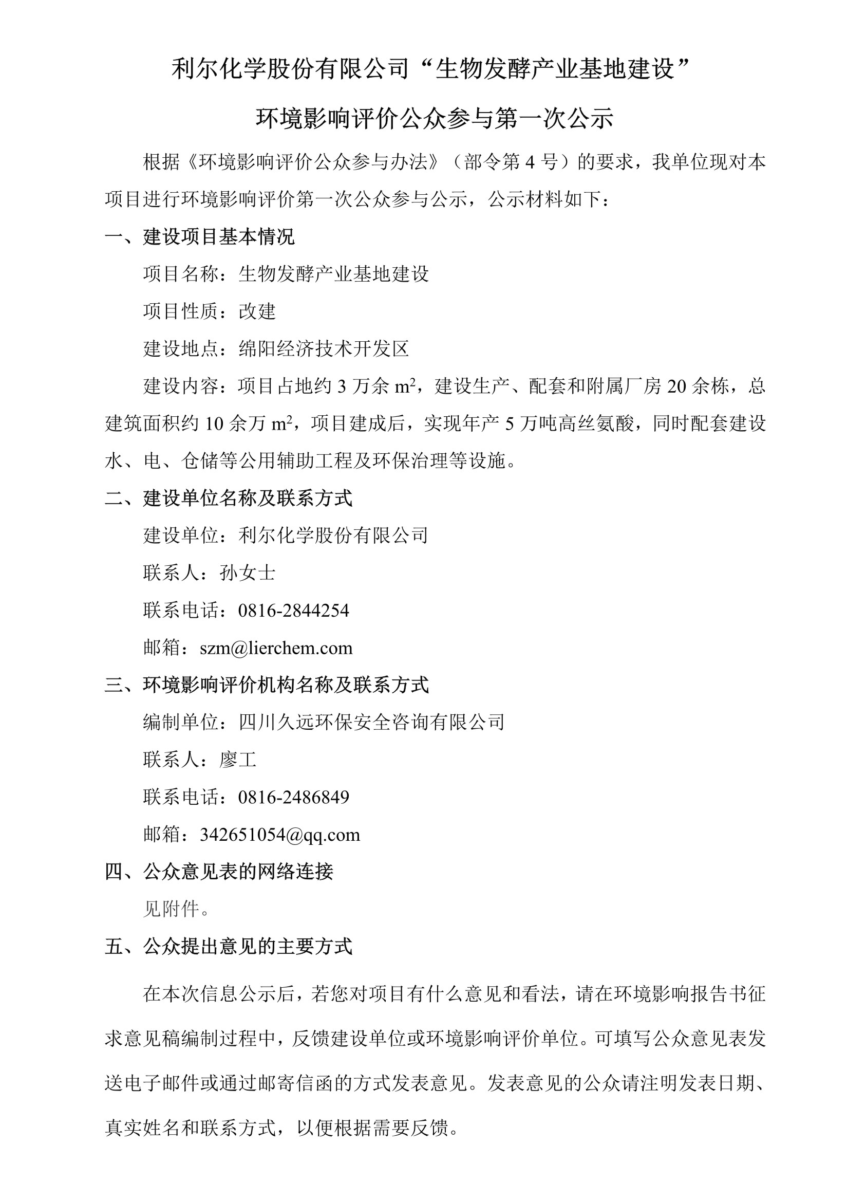 生物發酵產業基地建設公眾意見表.doc